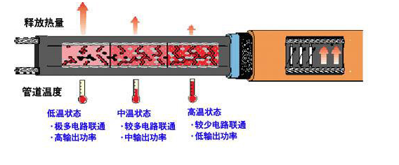 自限温电JK漫画官网APP带具有PTC电阻正温度效应,电JK漫画官网APP带工作的时候,温度上升到一定范围,自动断电,停止加热。超温自动切断电路,限制温度,以达到恒温JK漫画官网APP的目的。